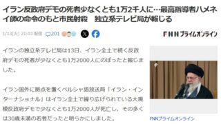 イラン国外に拠点を置くペルシャ語放送局「イラン・インターナショナル」はイラン全土で繰り広げられている大規模反政府デモで少なくとも1万2000人が死亡し、その多くは30歳未満の若者だったと明らかにしました。 インターネットの...