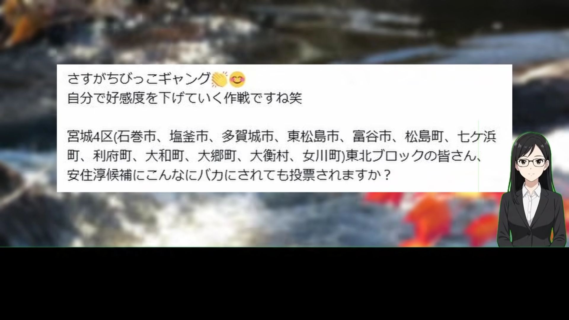 中革連・安住淳、選挙中に想定外すぎる態度をとり自爆してしまうwww